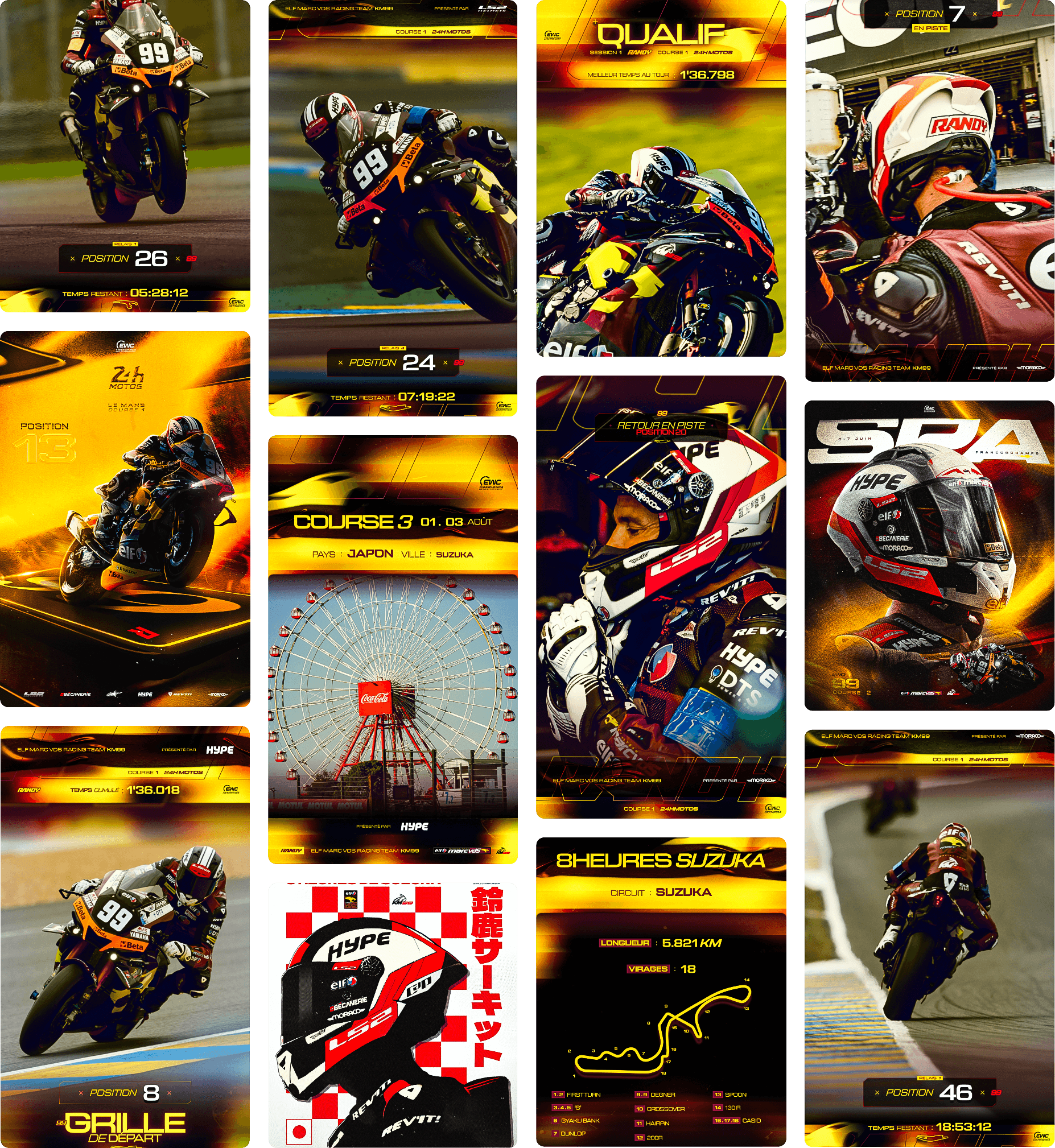 Nous assurons pour le pilote sa communication digitale : community management, suivi des courses, création de posters uniques, mis en avant de ses partenaires.